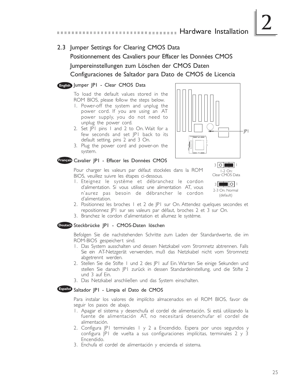 2.3 Jumper Settings for Clearing CMOS Data