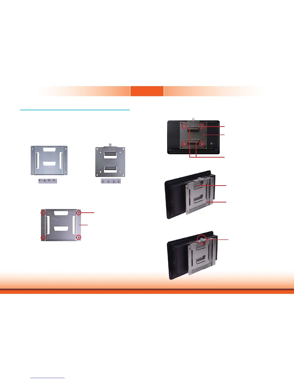 4. Using the hooks on “bracket 2”, slide the Panel PC to “bracket 1”.