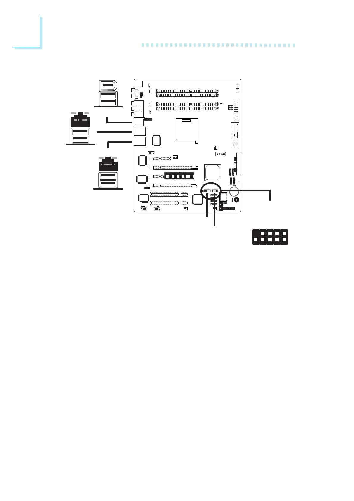 The system board supports 10 USB 2.0/1.1 ports. USB allows data