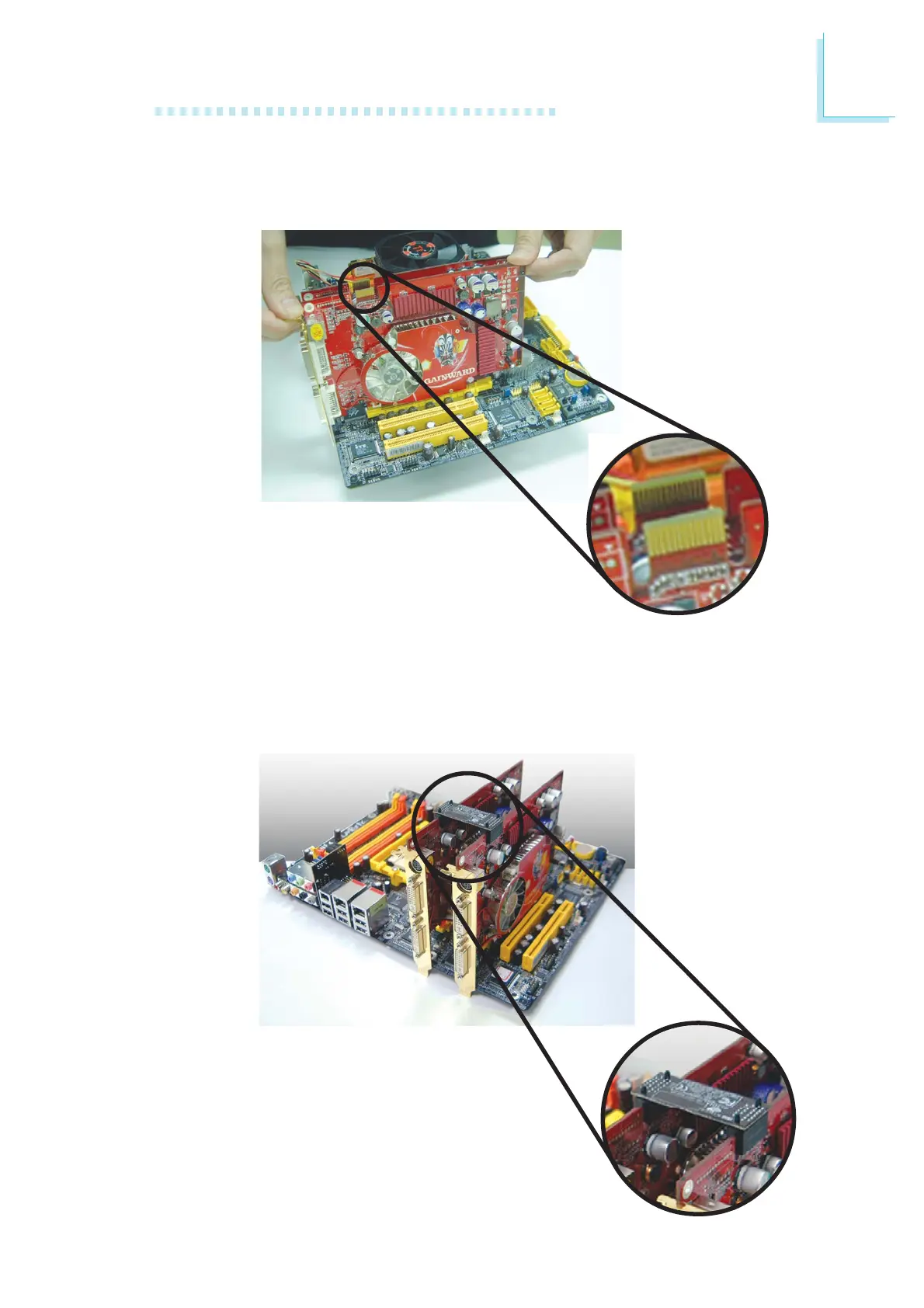 above the SLI connector of the graphics cards then insert the