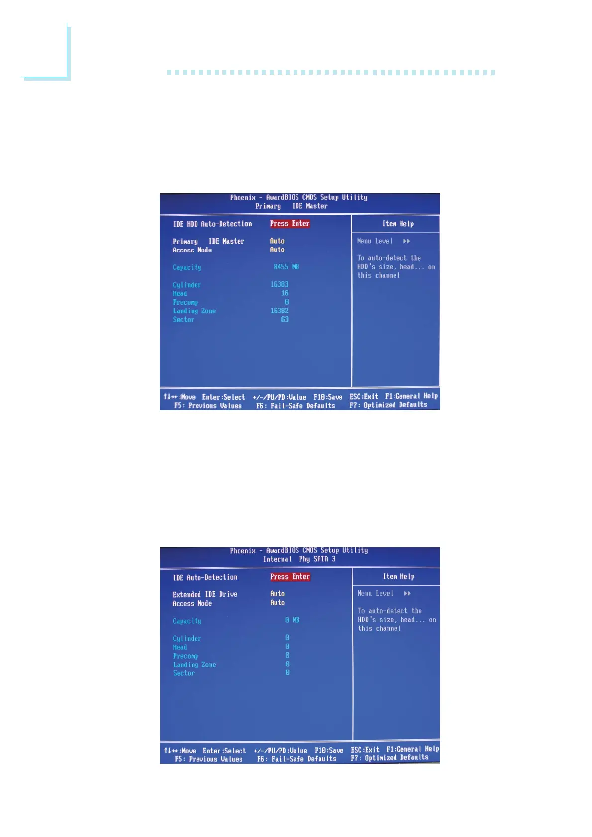 Primary IDE Master, Primary IDE Slave, Secondary IDE Master and
