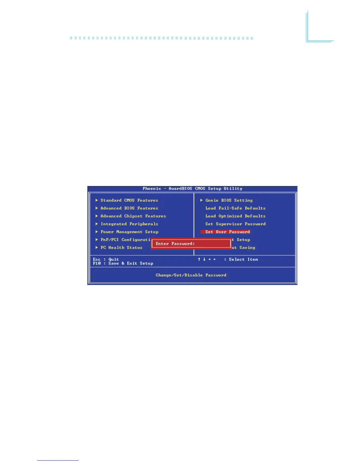 lected in the Advanced BIOS Features. If you want a user to enter a