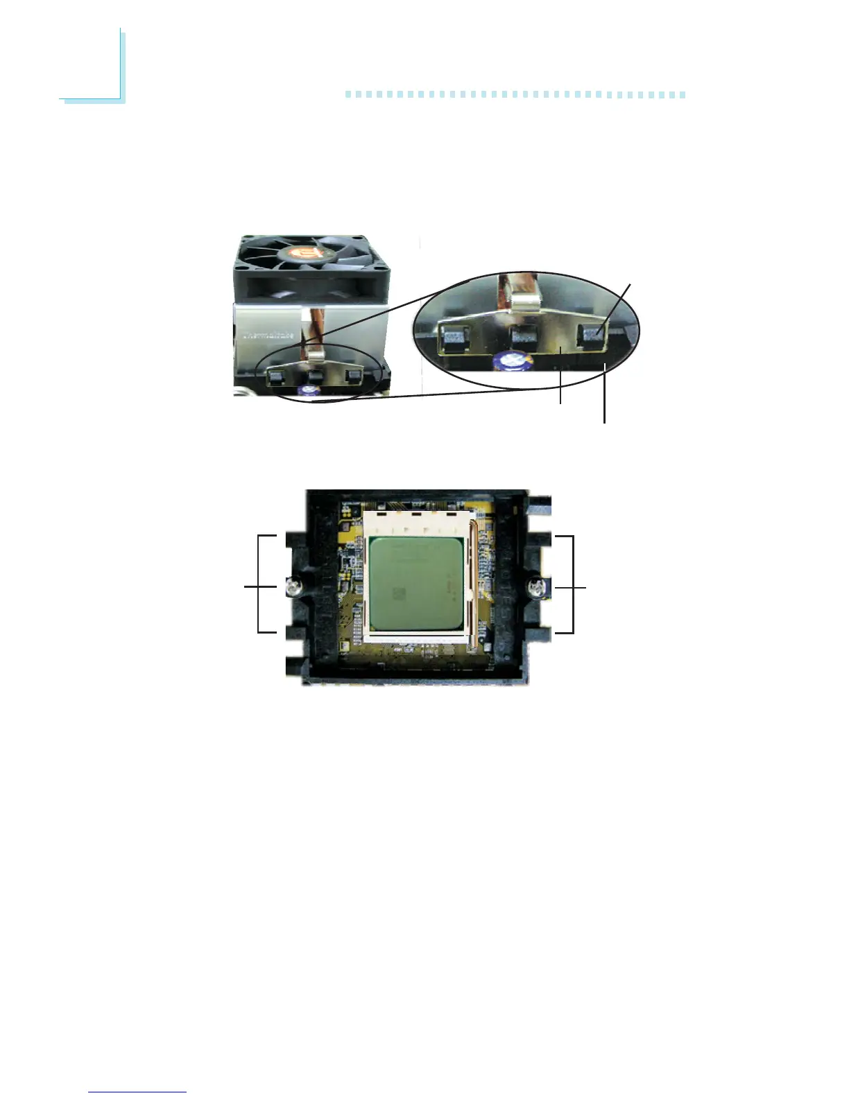 3. Place the heat sink on top of the CPU. Now hook one side of