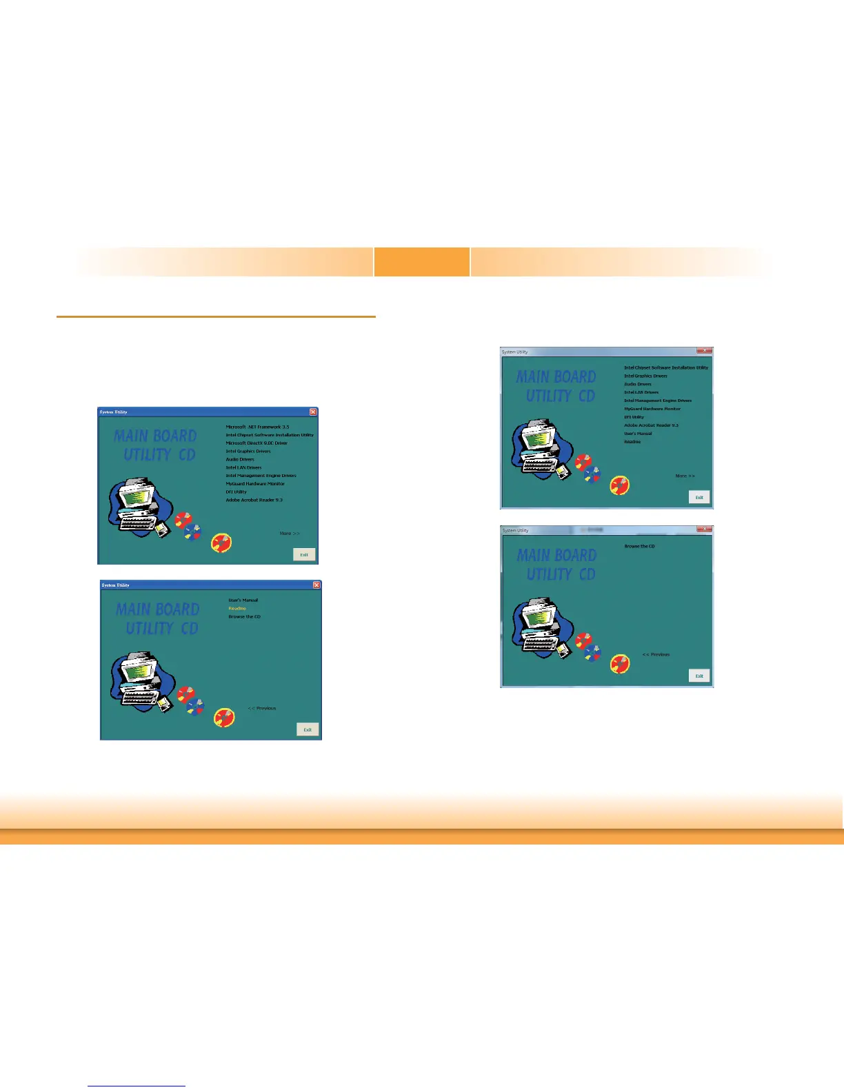 Insert the CD into a CD-ROM drive. The autorun screen (Mainboard Utility CD) will appear. If