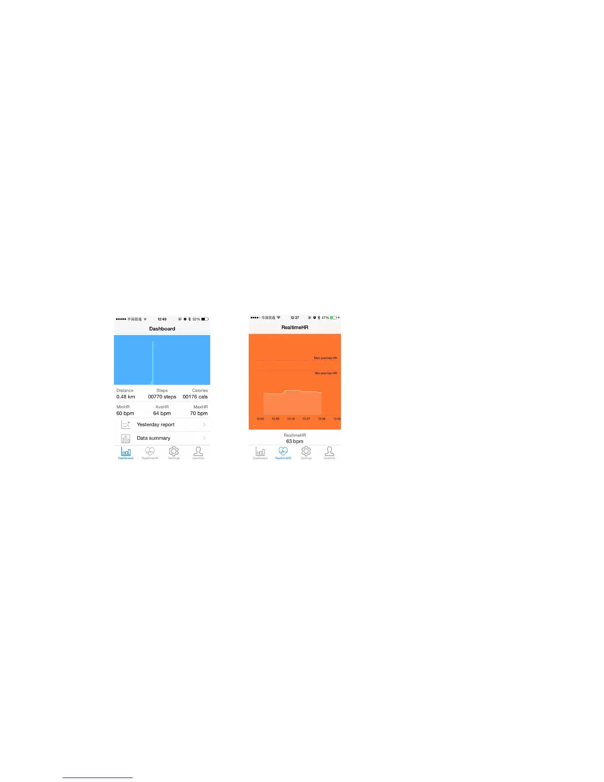 heart rate, yesterday data and data summary will be shown on the ap interface.