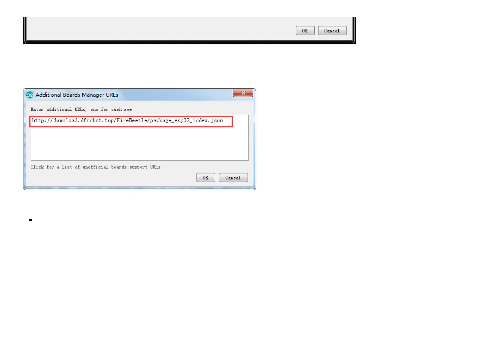 Copy the address to the newly popped up box: http://download.dfrobot.top/FireBeetle/package_DFRobot_index.json