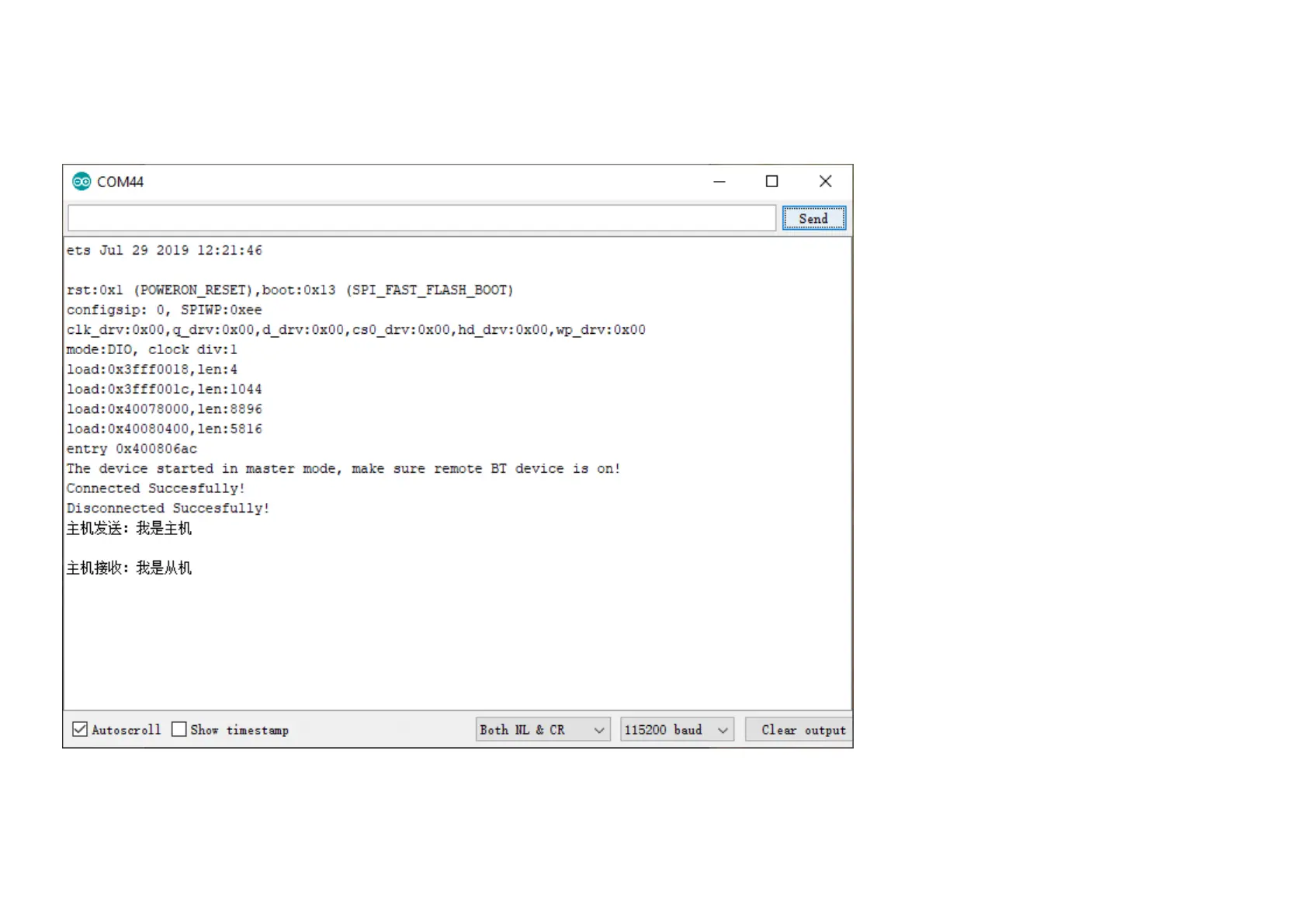 Send "I'm the slave" from the slave port.