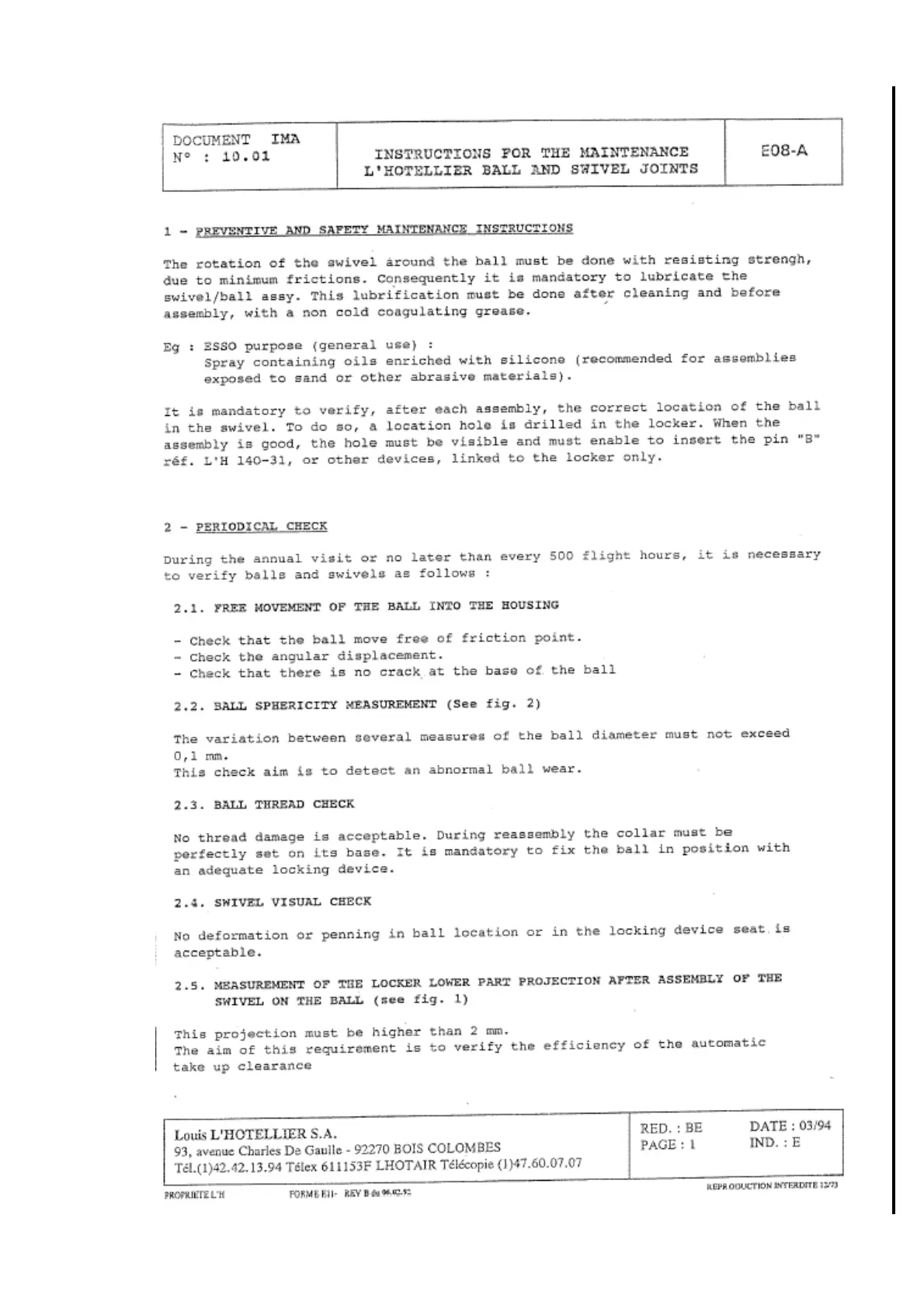 Instruction for maintenance of L’Hotellier ball and swivel joints cont.
