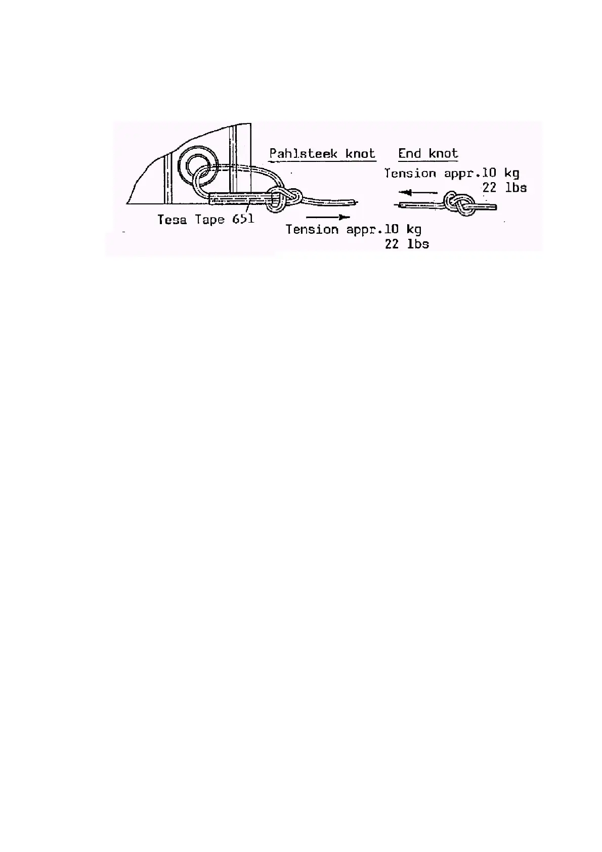 pretension rope with about 10 kg <45 lbs), place end knot as shown on.