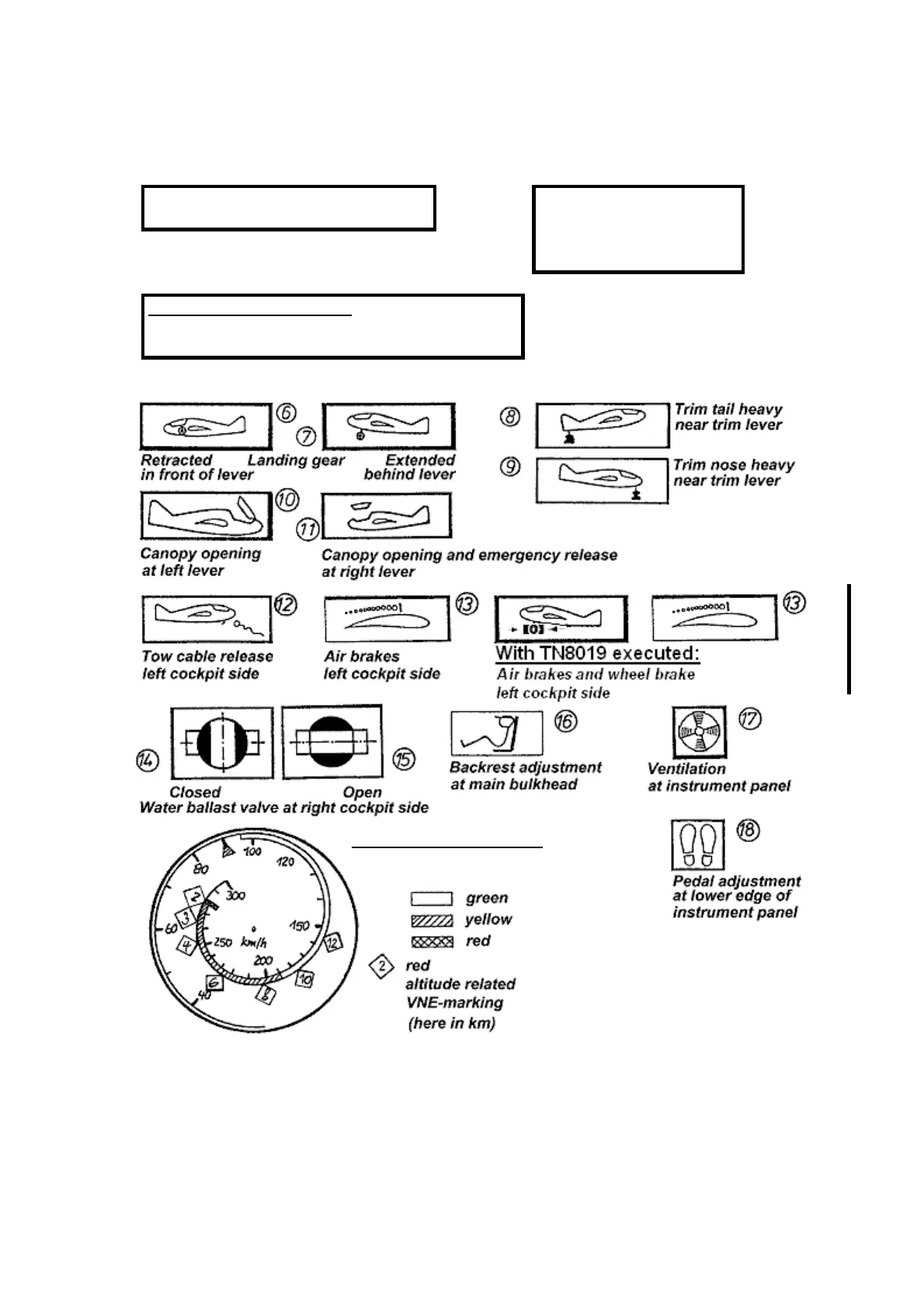 VNE markings, a placard must be near the ASI. For possible versions see next page.
