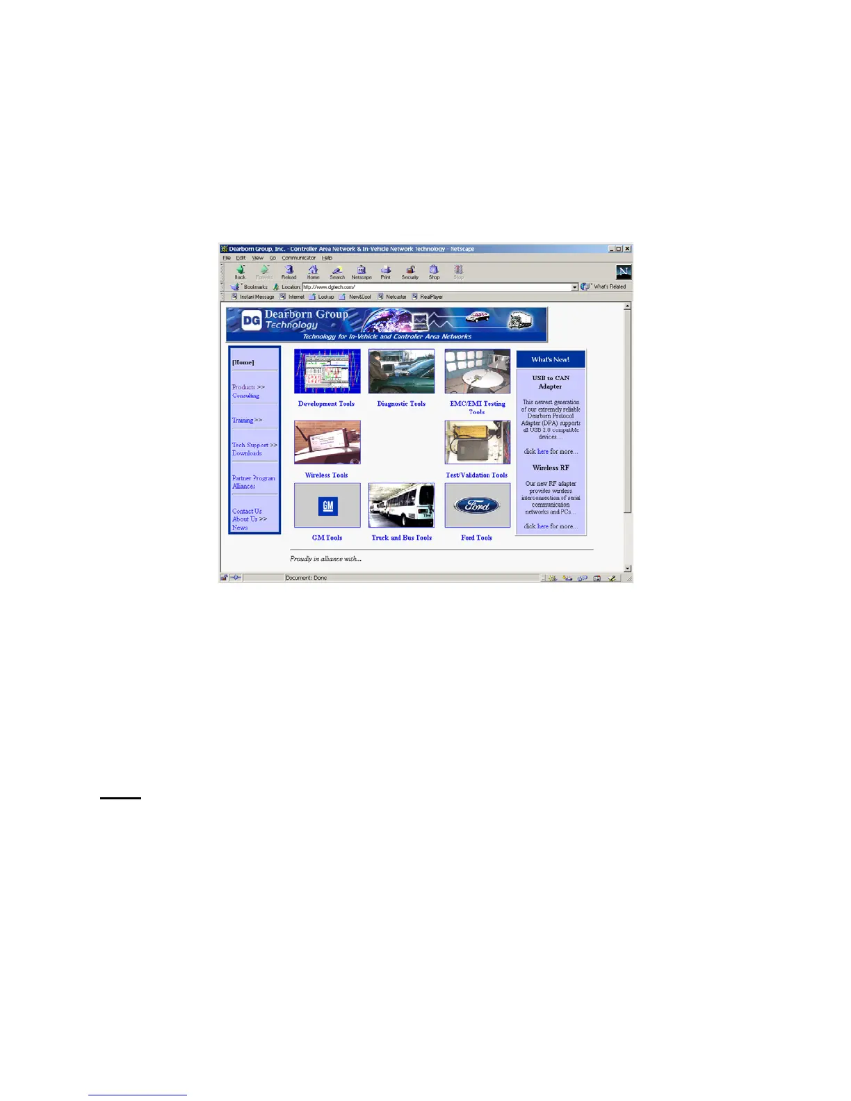 A link to the Dearborn Group Web page, (functional if the hardware is connected to the “outside”