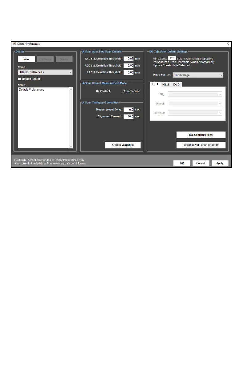 preferences for the device. Doctor Preferences dene the default protocol for performing