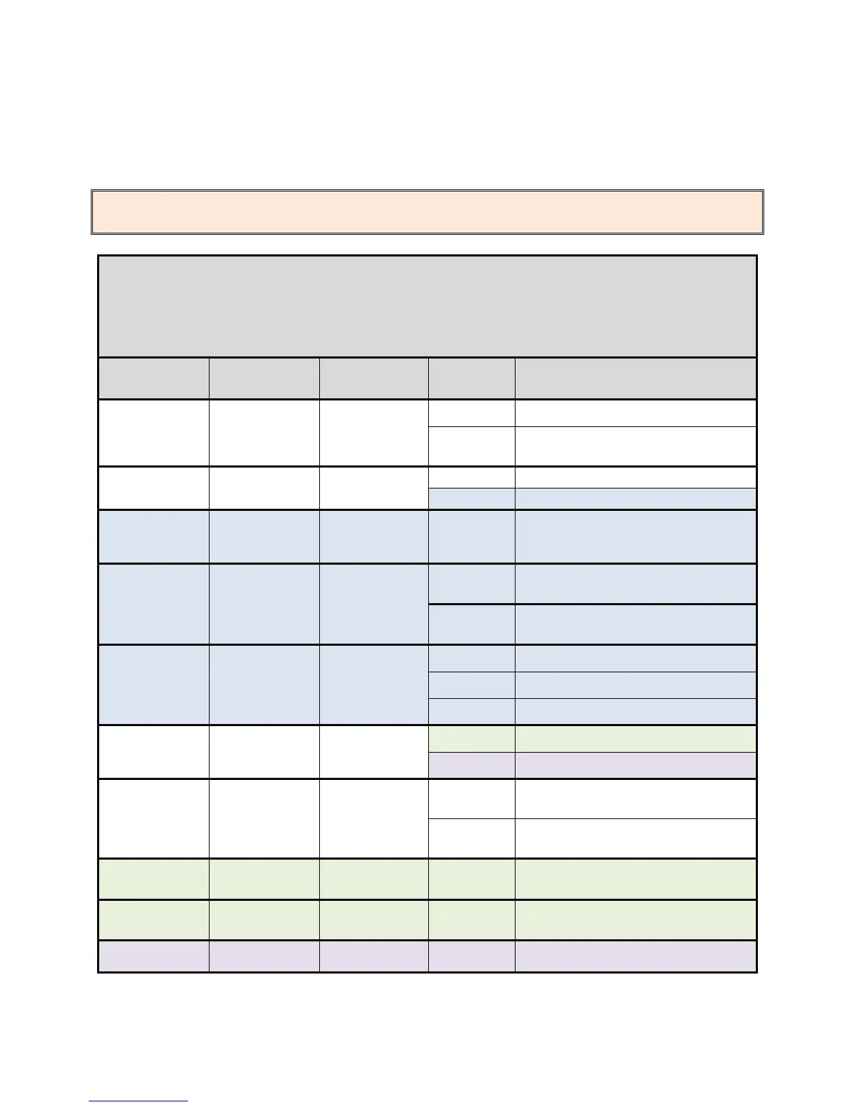 NOTE: Shaded parameters in this table are only available when certain settings are active, e.g.