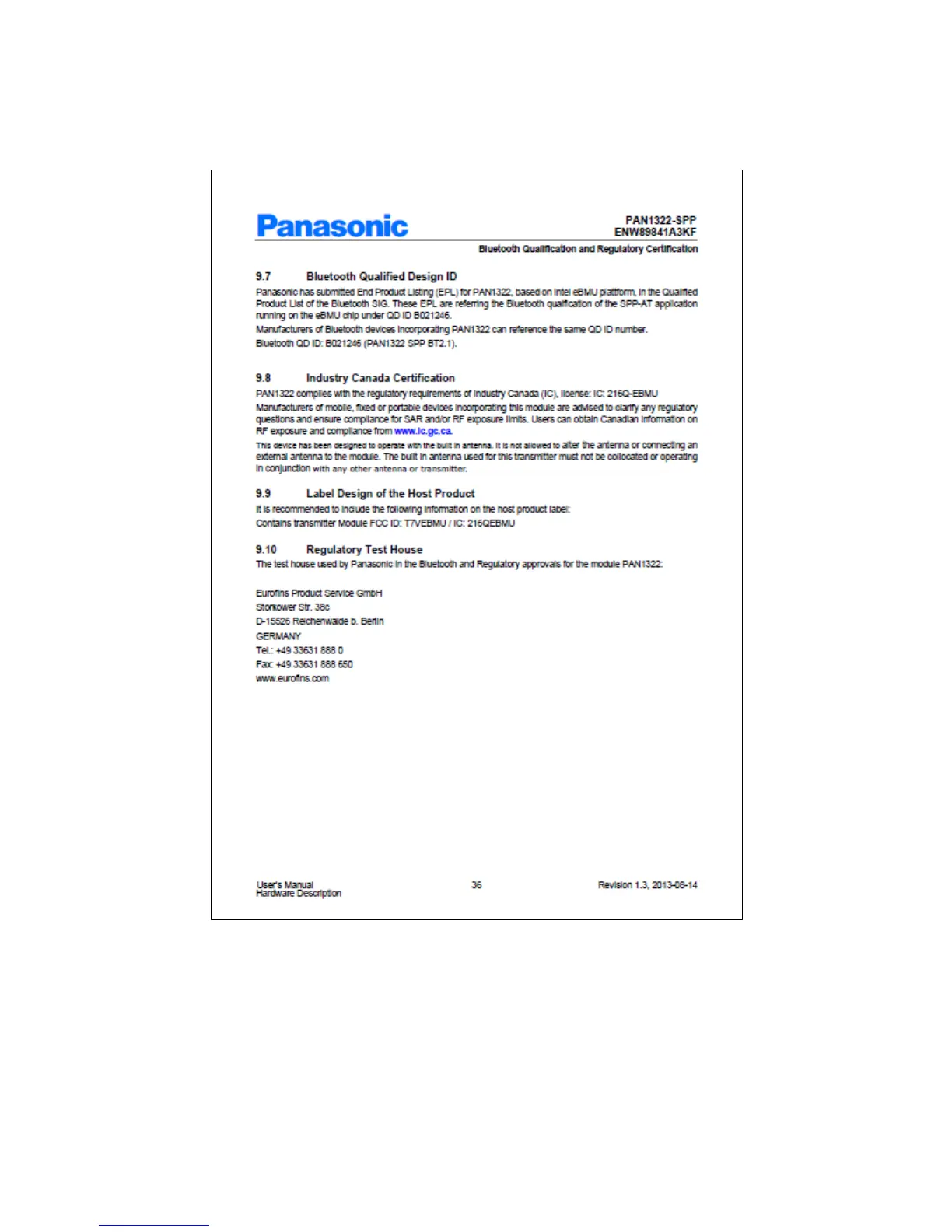 Image from Panasonic Corporation PAN1322-SPP User Manual Rev 1.3