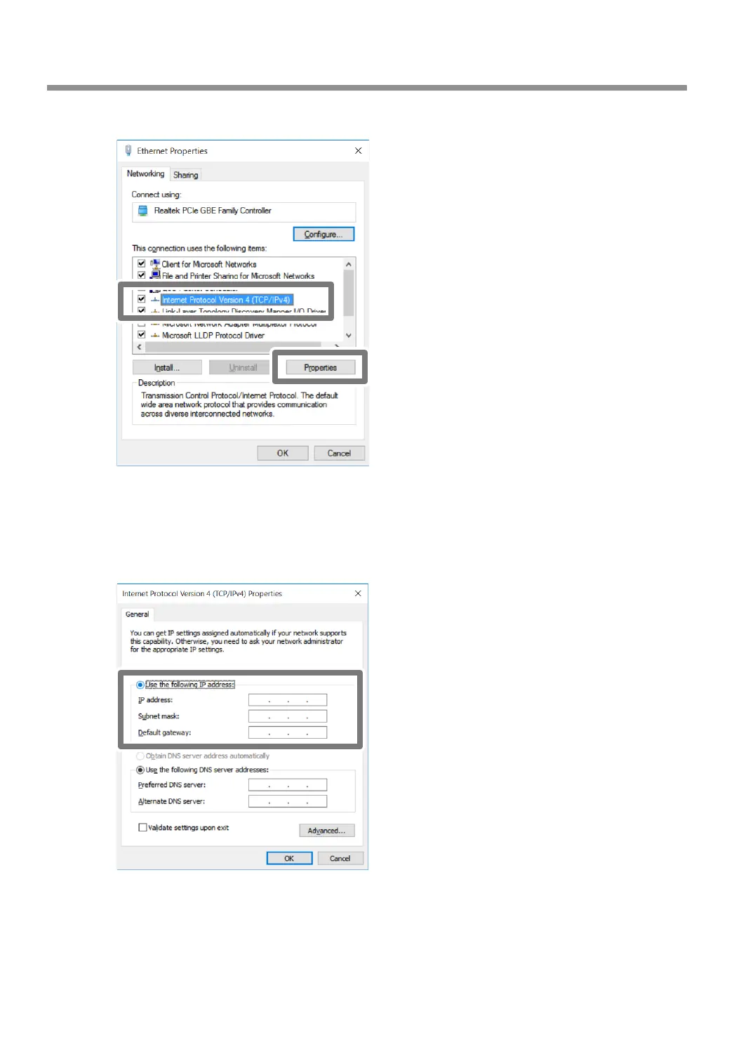 Select [Internet Protocol Version 4 (TCP/IPv4)], and then click [Properties].