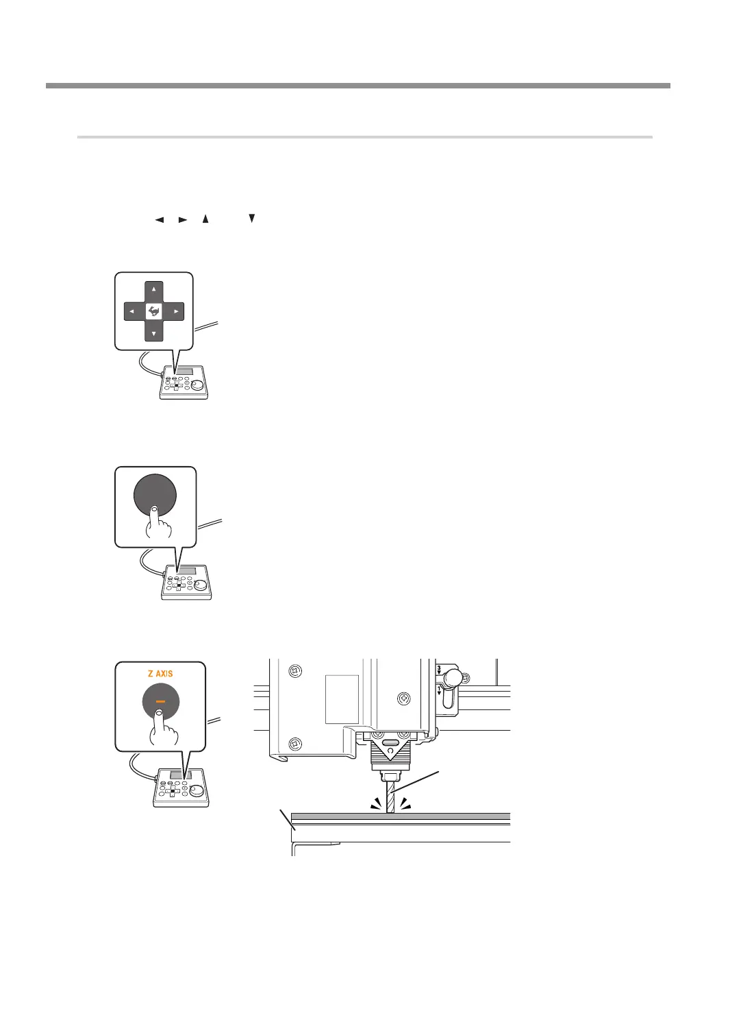 Press [-Z] to lower the end mill to a location where the workpiece is cut by a slight