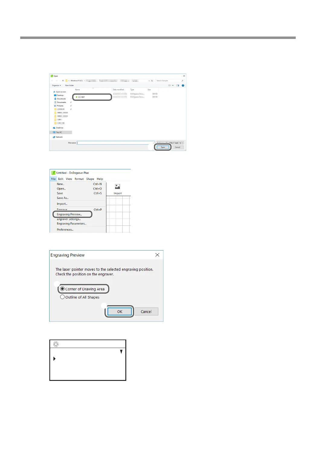 On the [Engraving Preview] screen, select [Corner of Drawing Area].