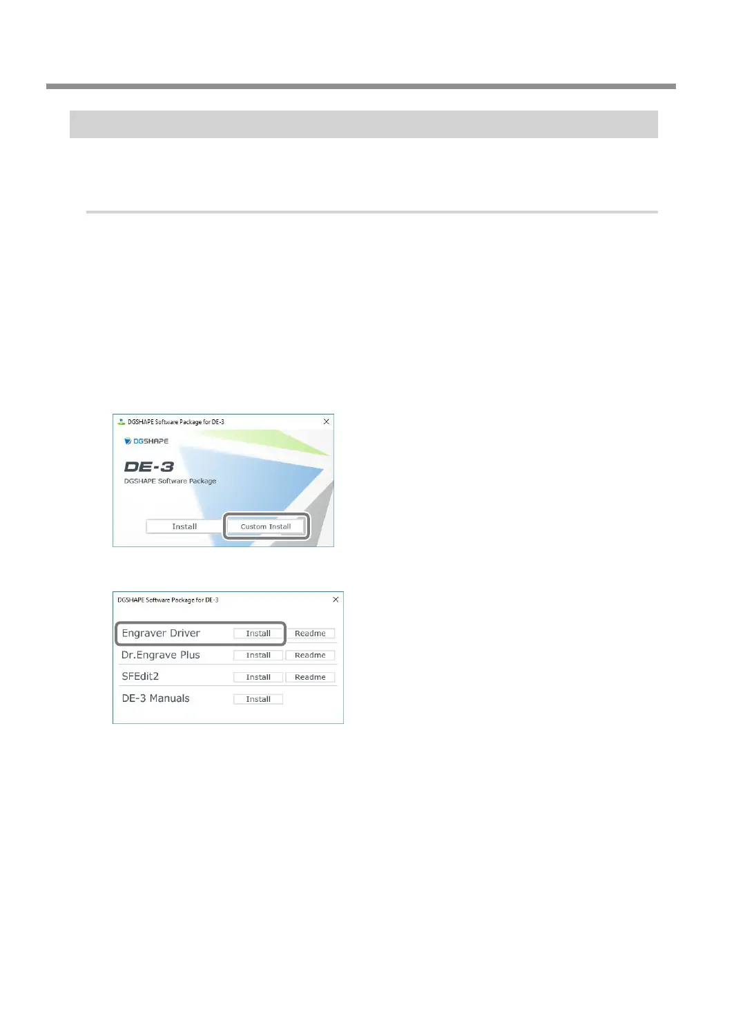 On this machine, you can install Engraver Driver and software all at once. For the method to install all at once, see