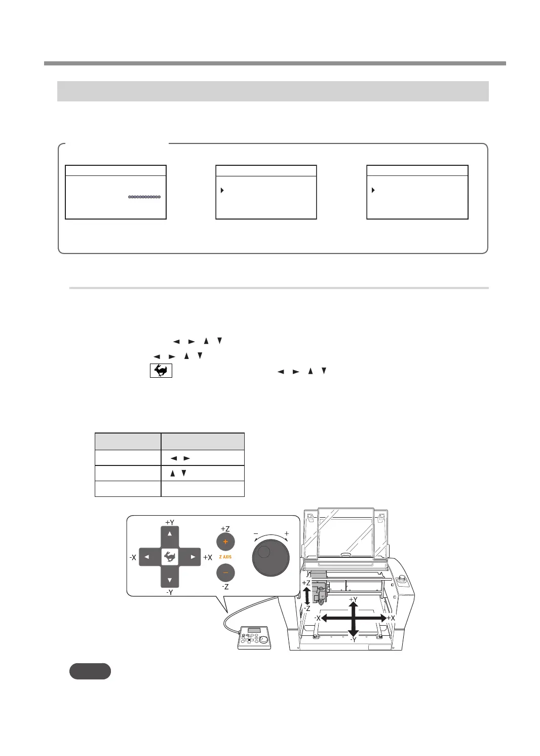 ], [ ], [ ], [ ], [+Z], or [-Z] performs movement by 0.01 mm (0.0004 in.).