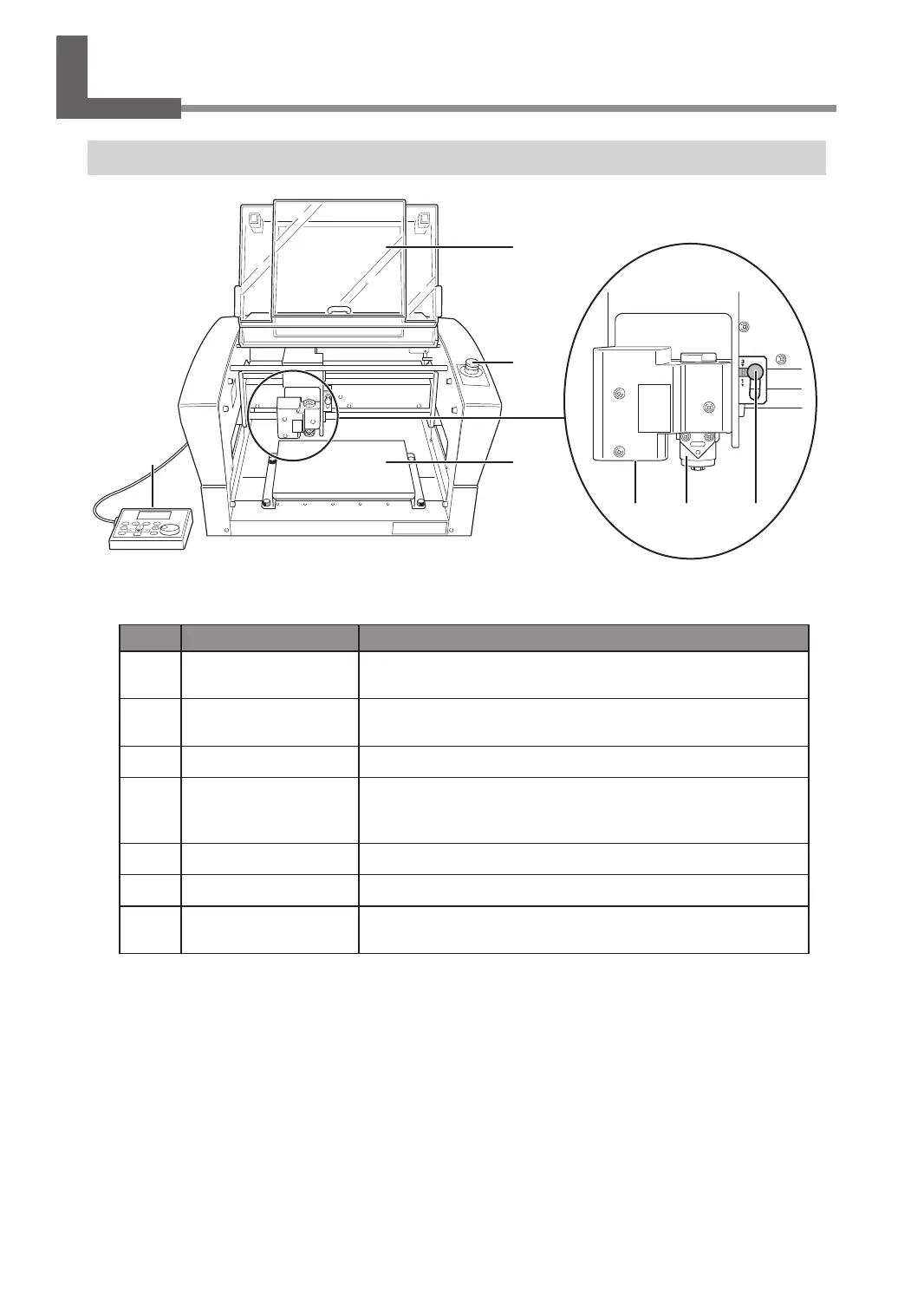 Workpiece table The workpiece to be engraved is mounted on this table.