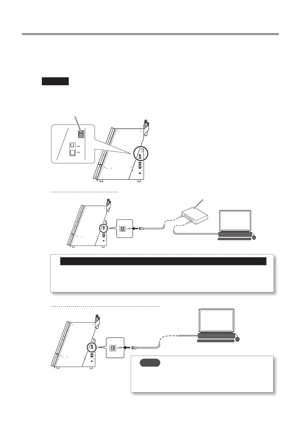 Important: Do not connect any device other than the machine and a computer to the LAN hub.