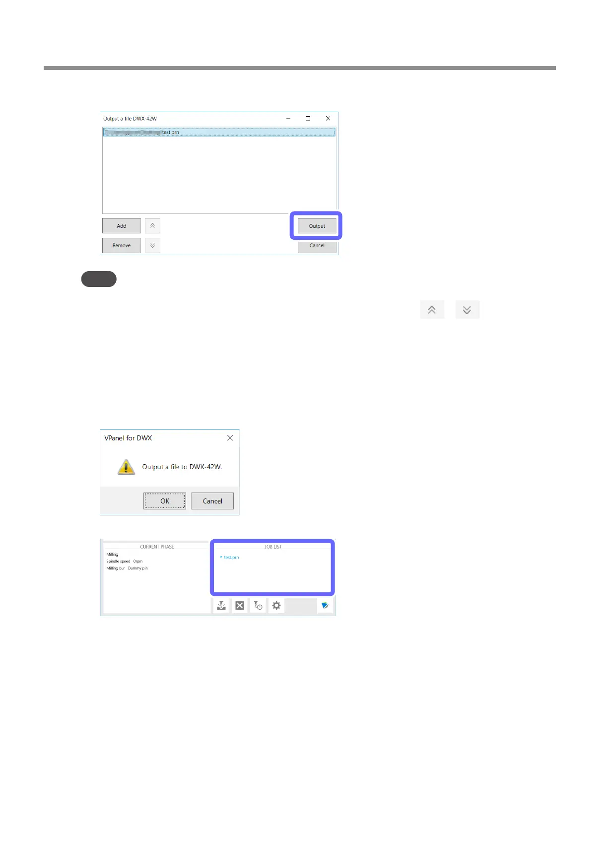 The output milling data is displayed in the JOB LIST of the top window, and then milling starts.