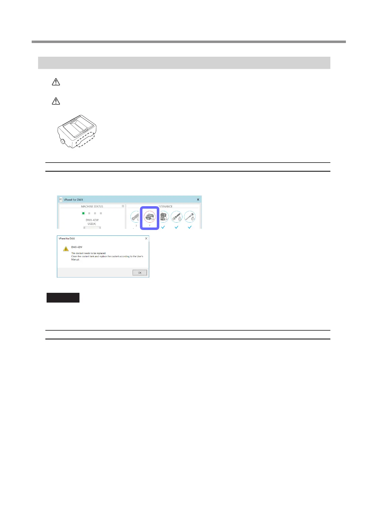 Be sure to replace the coolant once per week or when instructed to do so by the message displayed in VPanel�