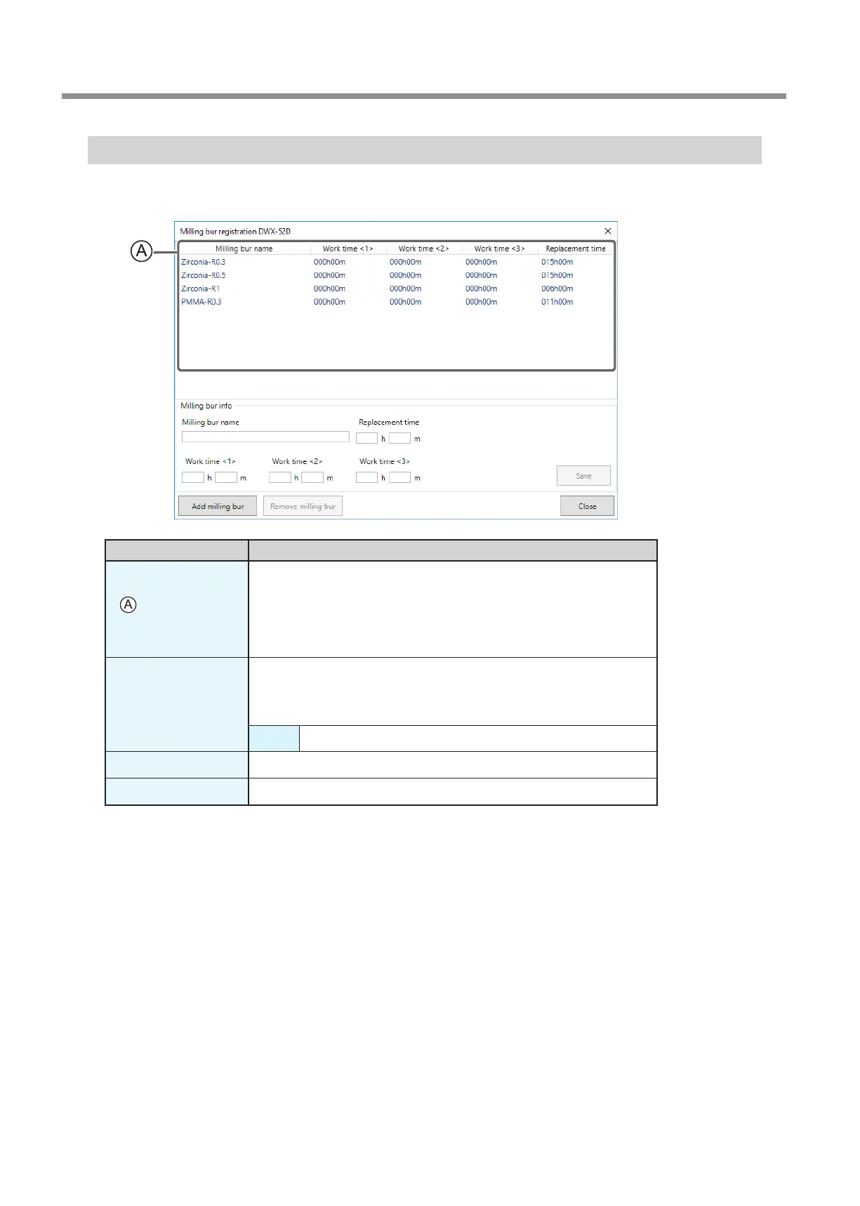 A milling bur's registration information can be changed in order to change the work time or the replacement time. When more than
