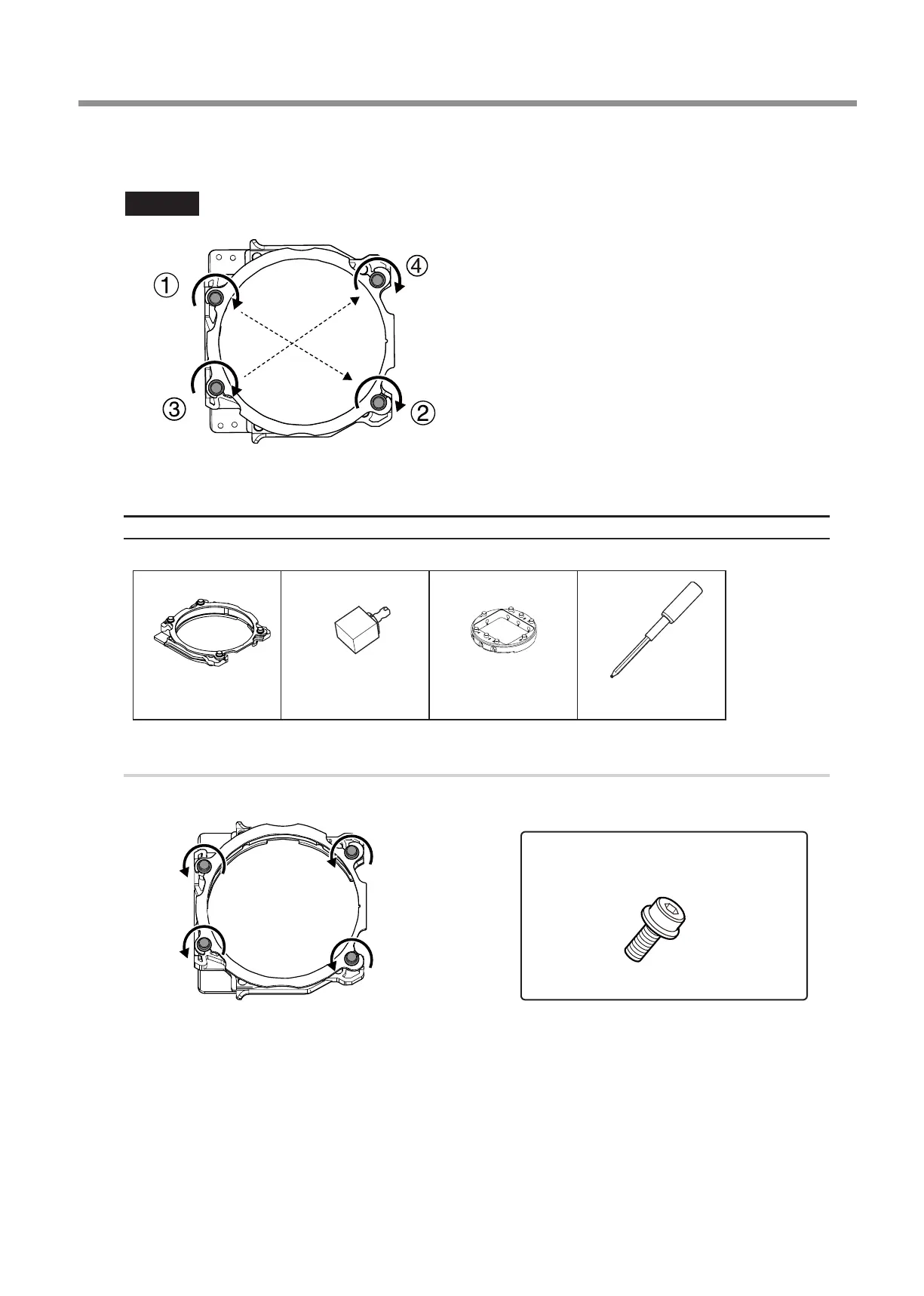 To prevent workpiece damage, tighten the screws in order across the diagonals.