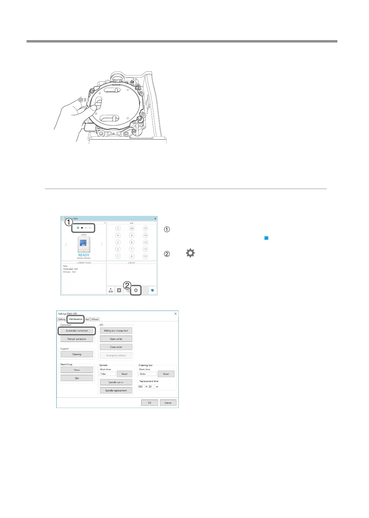 Lightly tug on the automatic correction jig to check that it does not come loose.