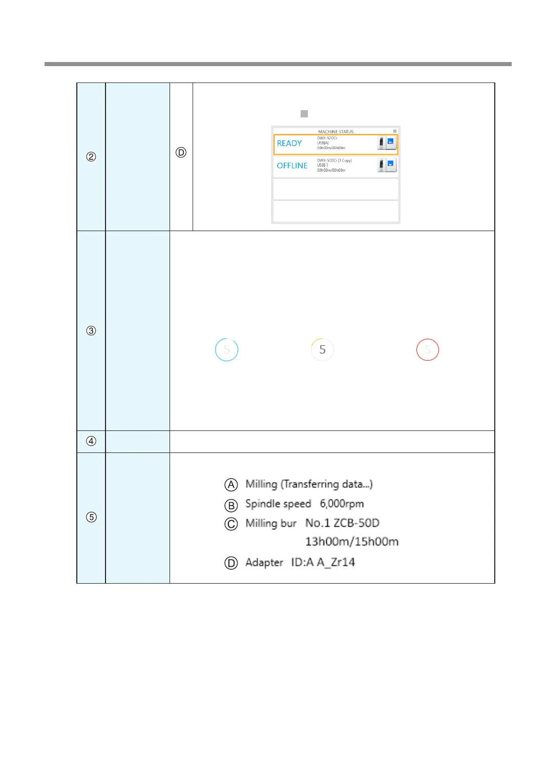 JOB LIST Displays the data being milled, the milling data in standby, and the milling progress.