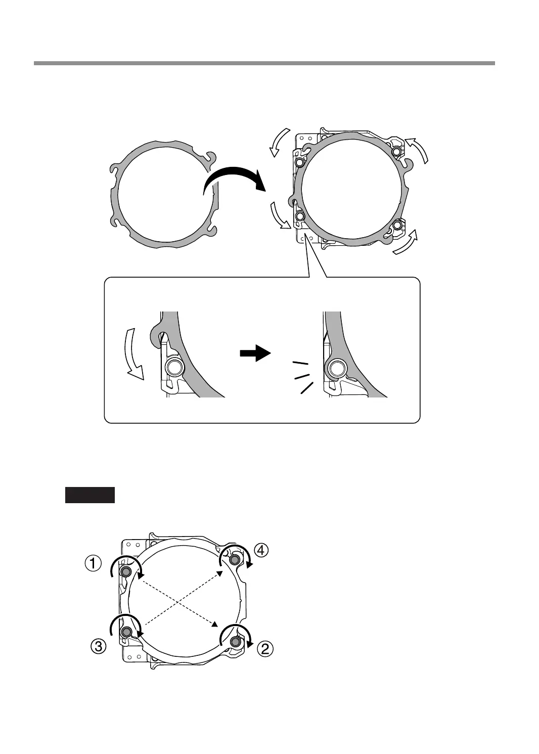 To prevent workpiece damage, tighten the screws in order across the diagonals.