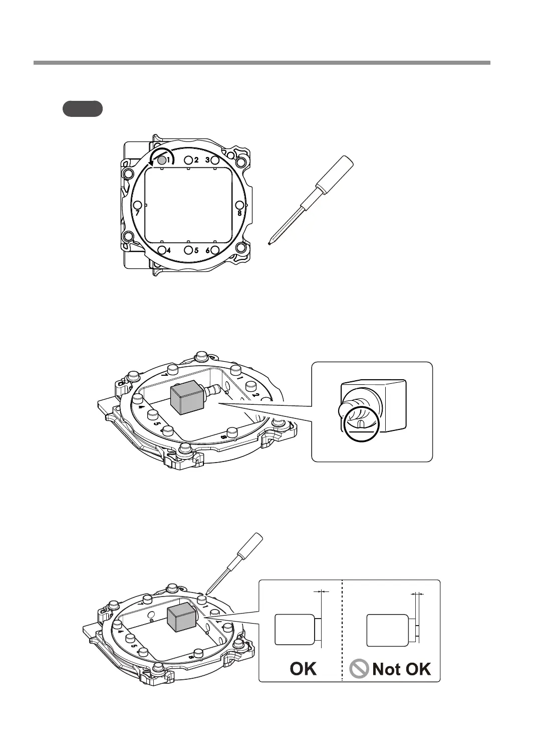 Use a torque screwdriver to loosen the screws holding the pin-type workpiece in position.