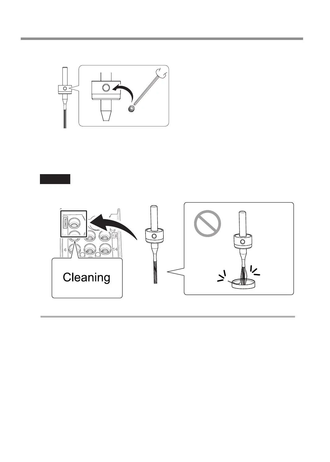 Insert the cleaning tool into the stocker slowly and from directly above the stocker to prevent the