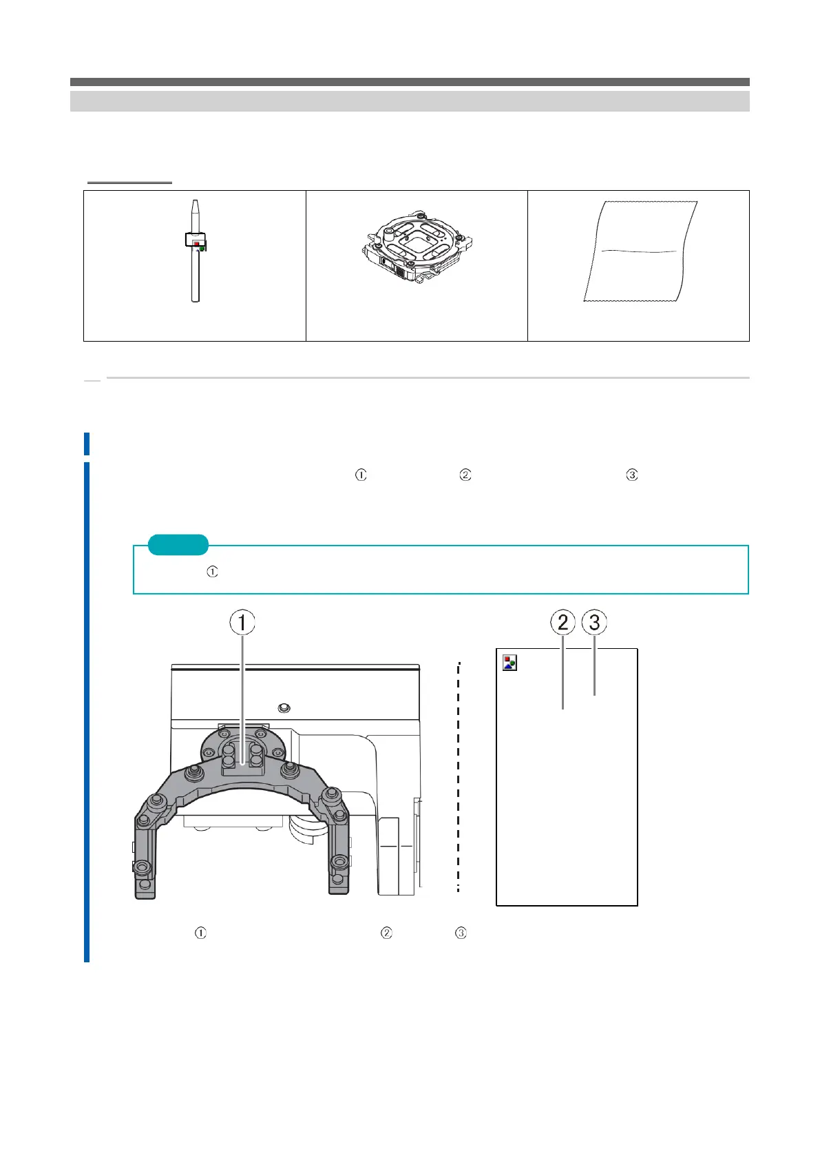 Wipe off any dirt from the clamp (), correction value projection () and milling bar sensor-() with a cloth for cleaning the