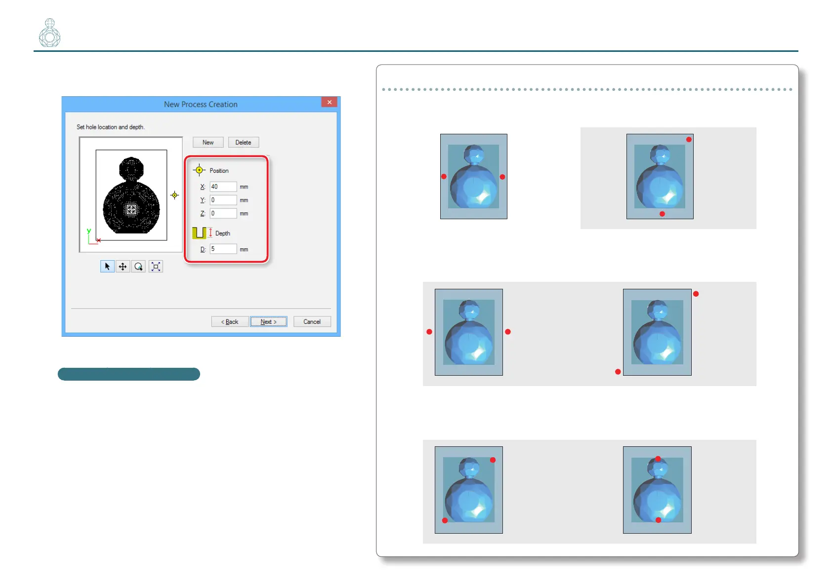 Set “Depth” to around half the length (5 mm) of the positioning