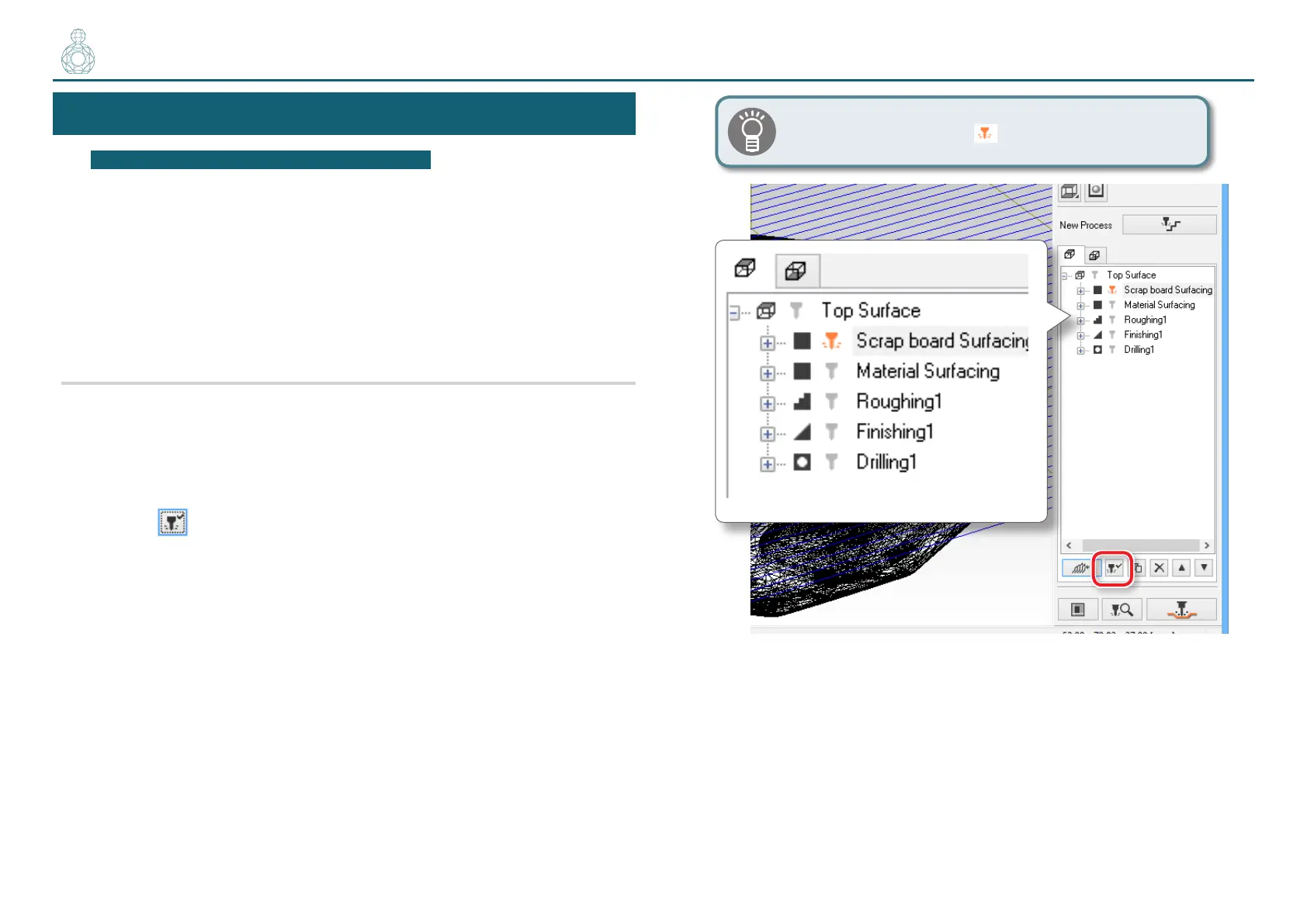 1. Only enable the “Scrap board Surfacing” process on the MODELA