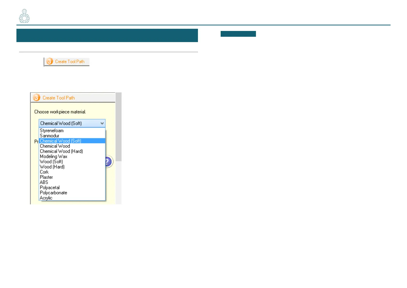 Choose a workpiece material from the pull-down list.