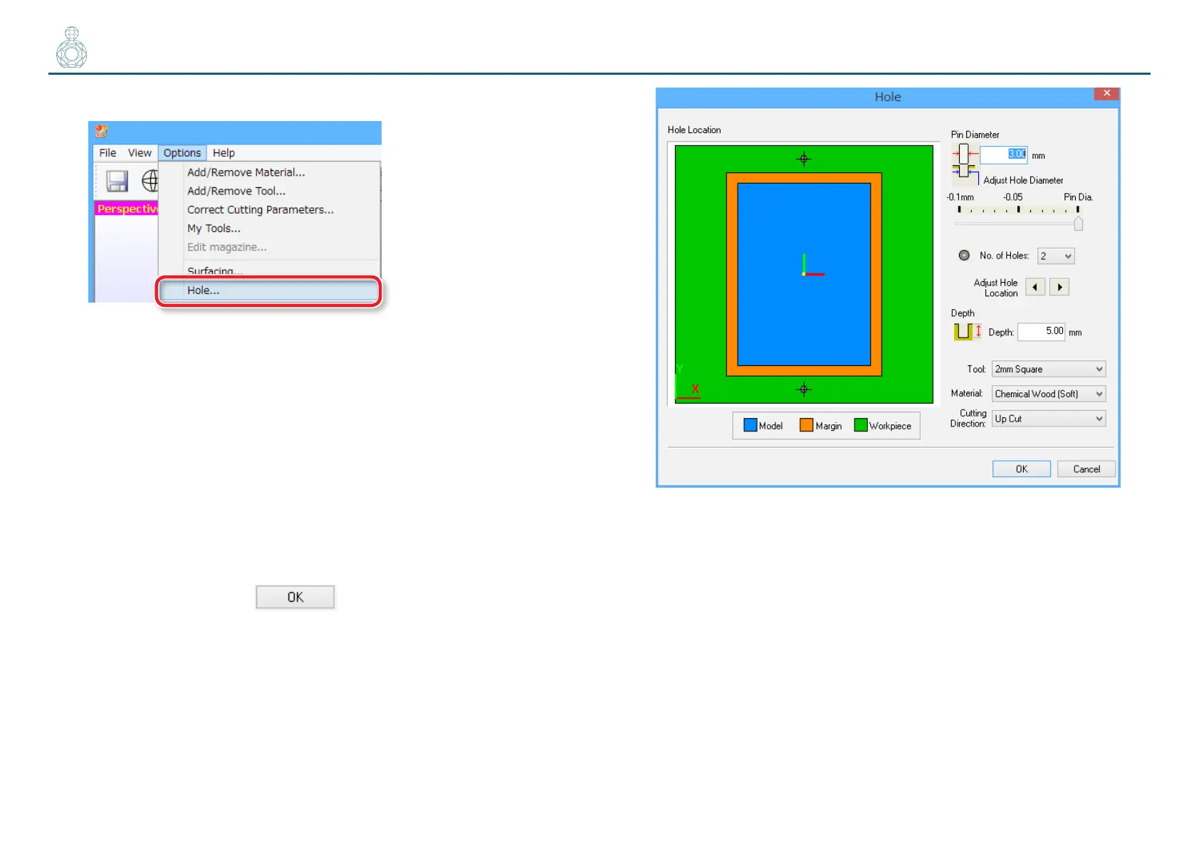 • Adjust Hole Diameter : Set the slider to [Pin Dia.].
