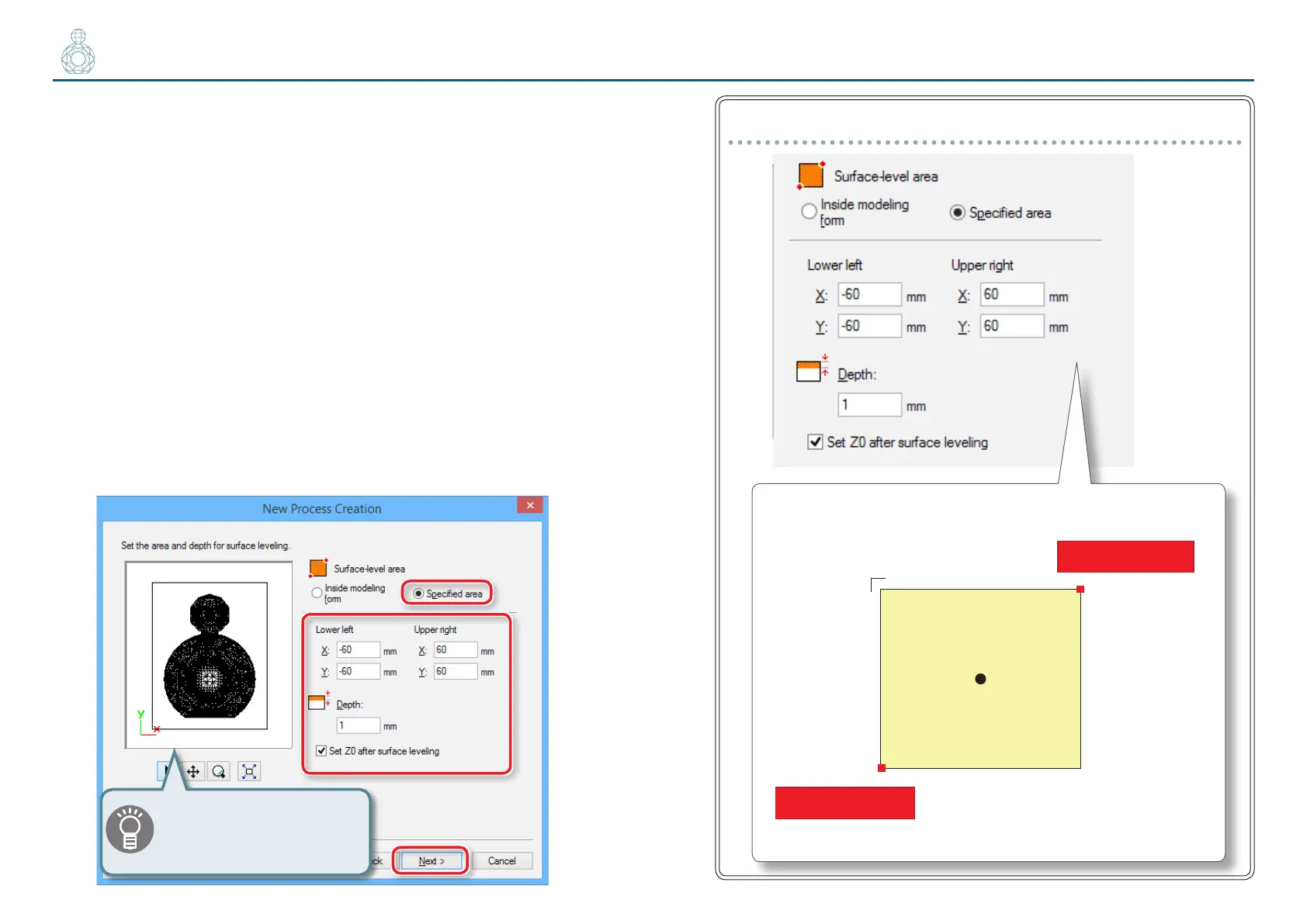 Point of the Model and Orientation” (p. 71). Set the cutting range so