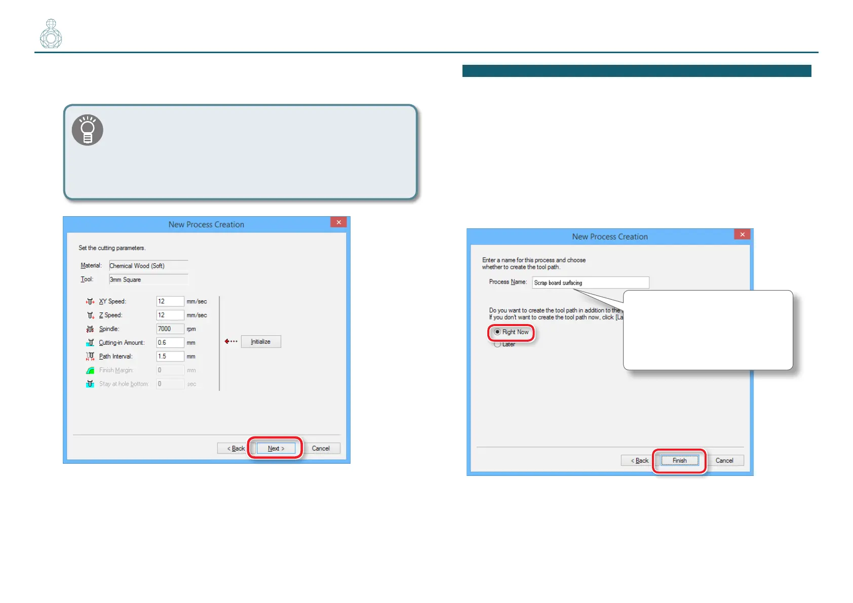 8. Enter a name for this process and create the tool path.