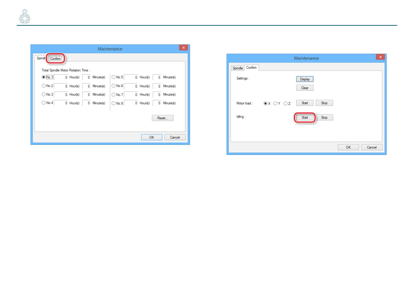 4. Click [Conrm] tab. 5. Click [Start] of “Idling.
