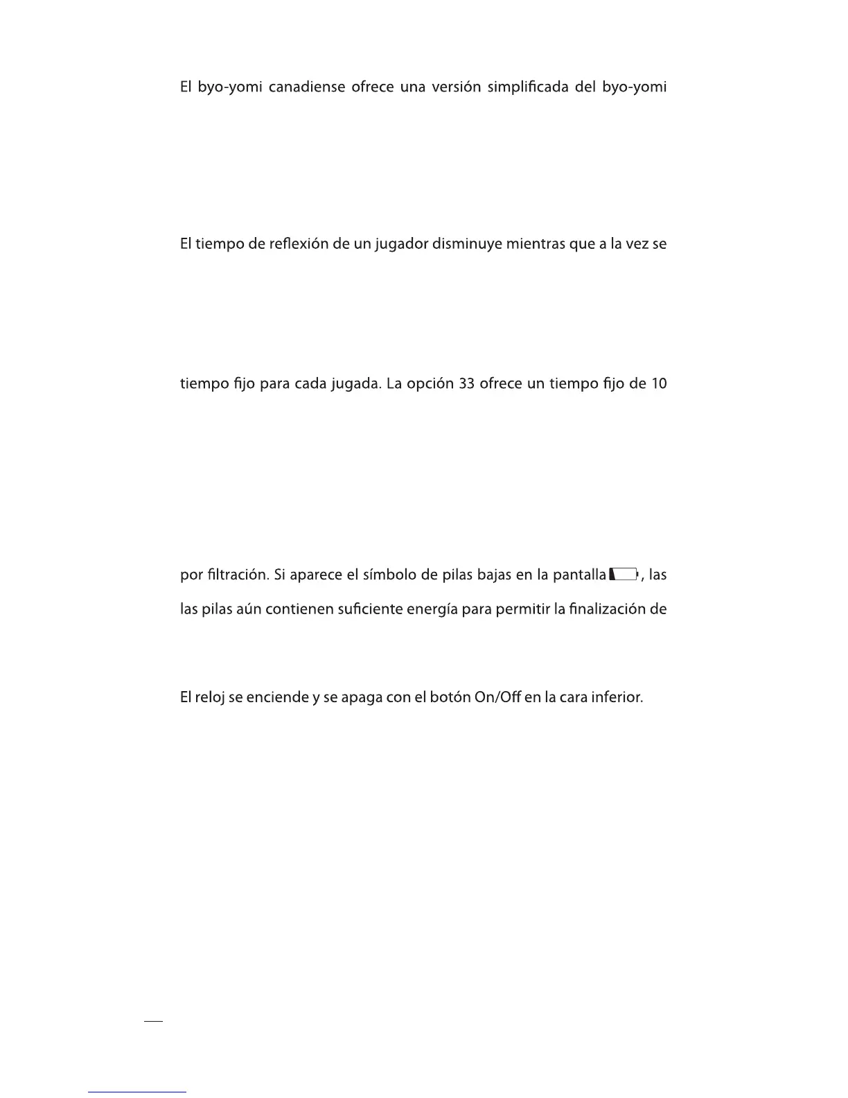 byo-yomi aparece en la pantalla. Cuando se hayan completado el núme-