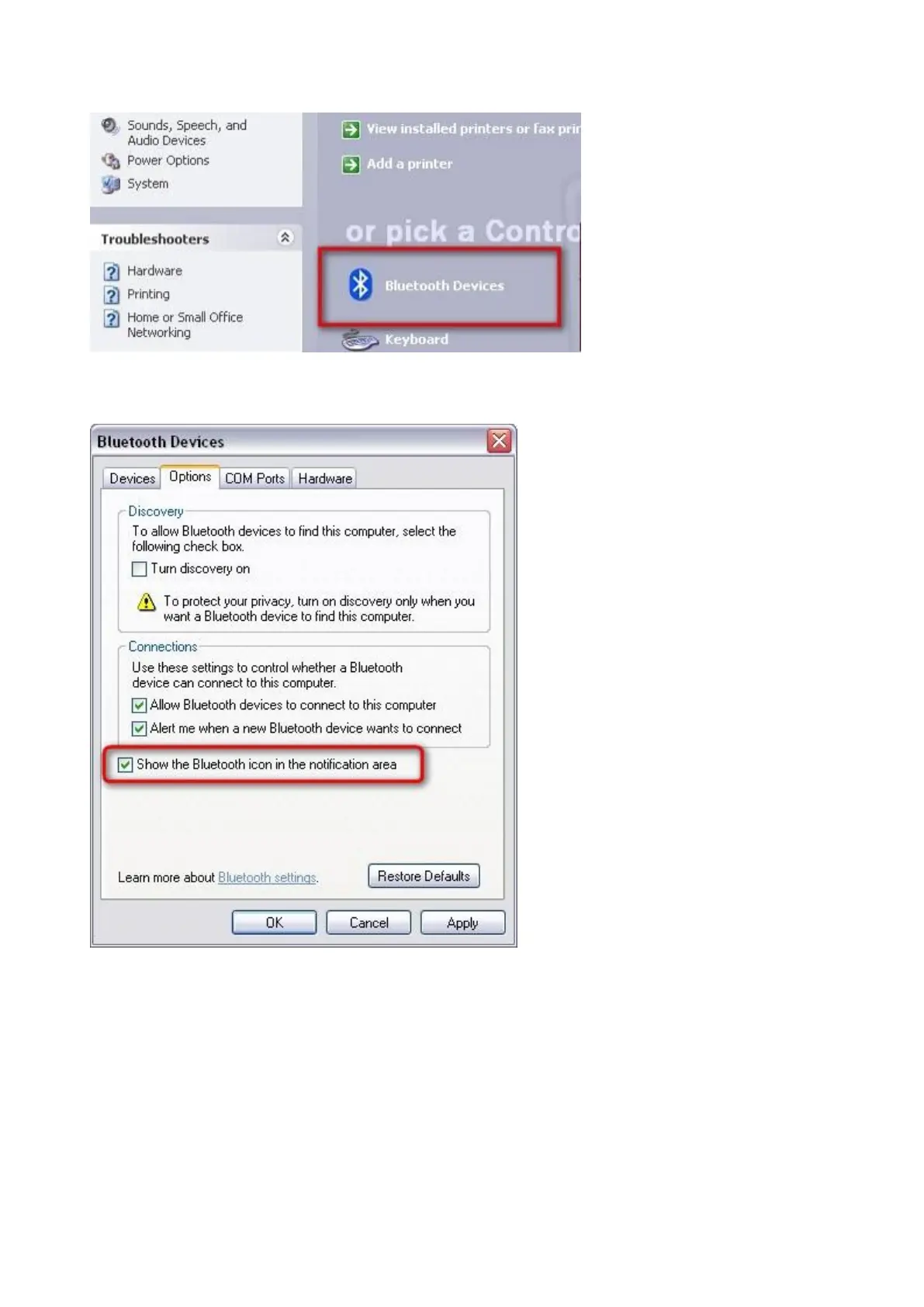 Picture 5 Bluetooth Devices in the Control Panel