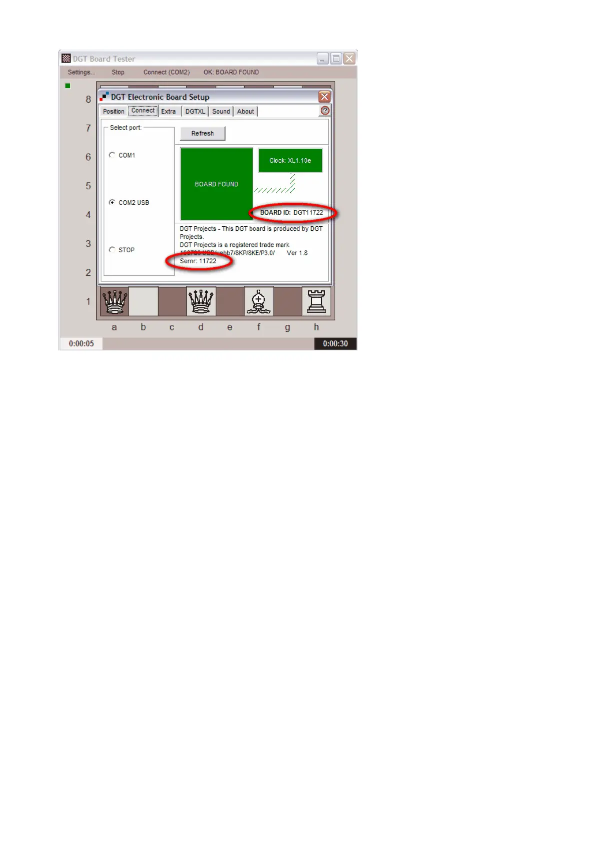 For more details about the possible settings of the "DGT Electronic Board Setup" please consult the manual