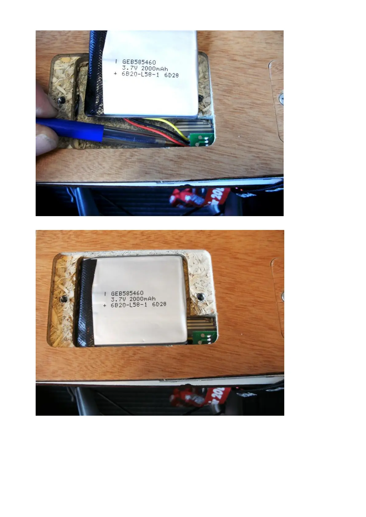 Place the battery in the opening of the board
