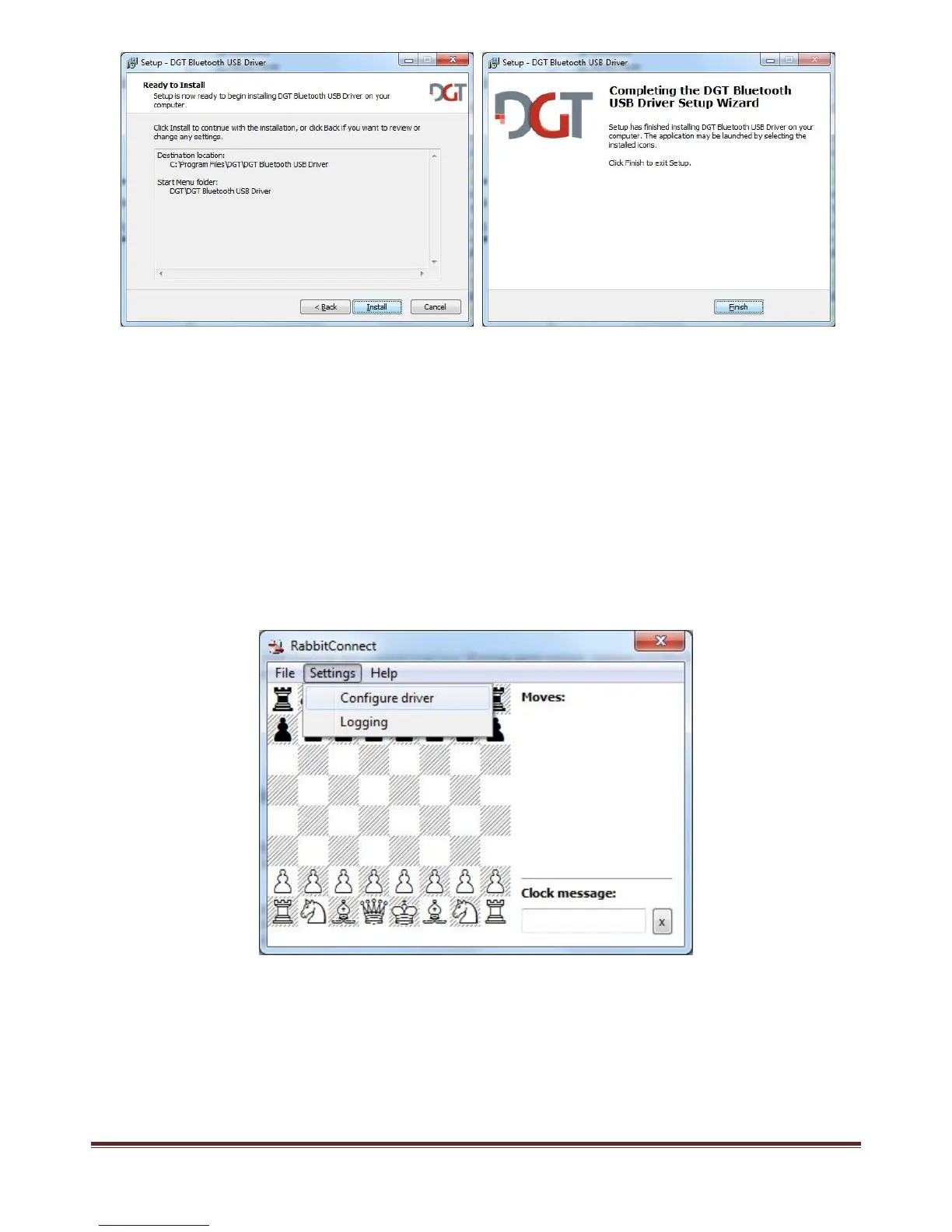 shown on the board picture. To test the e-Board it is a good moment to place all chess pieces on the DGT e-Board.
