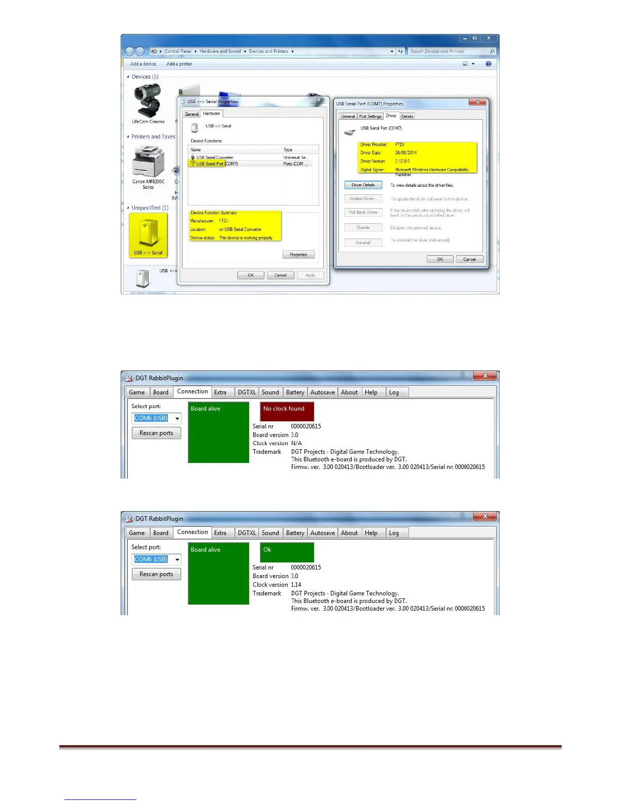 If the ‘’Board alive’’ box is green, the serial number of your board will be shown in following screen. Also important