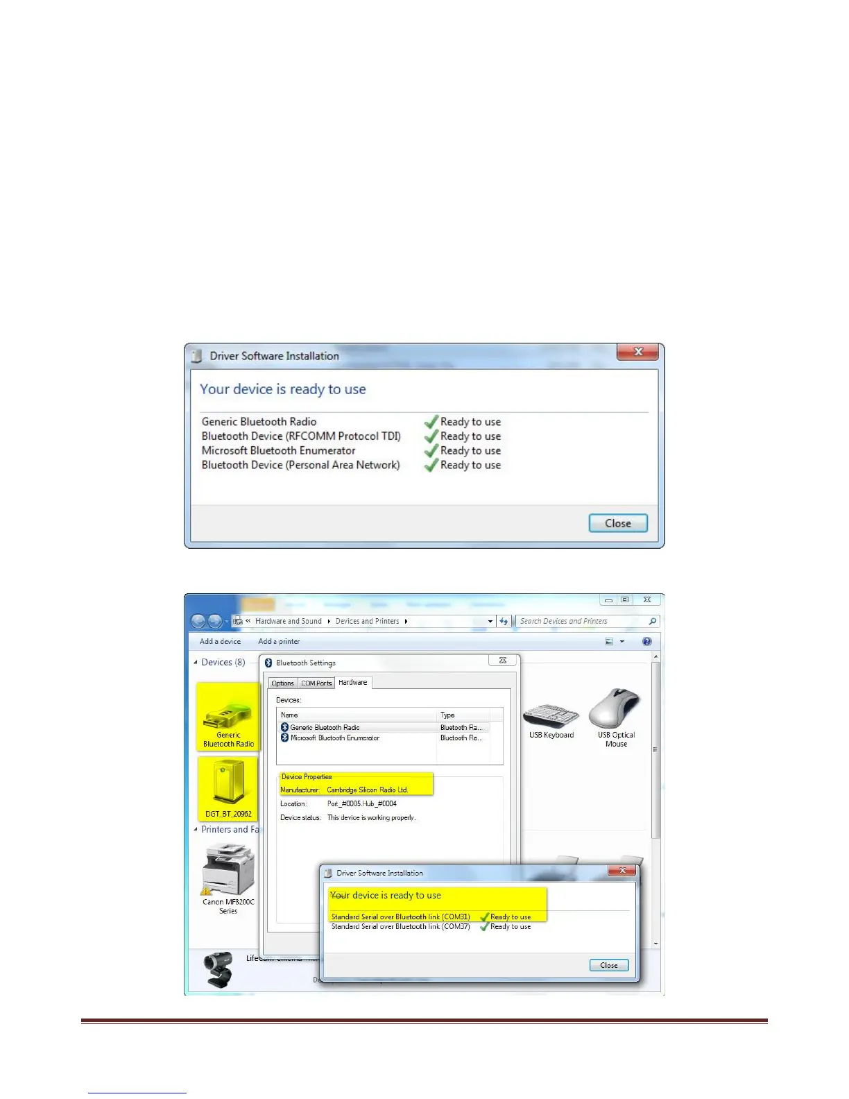for the basic USB connection. The next step is to set-up the external Bluetooth dongle (if required) and the Bluetooth