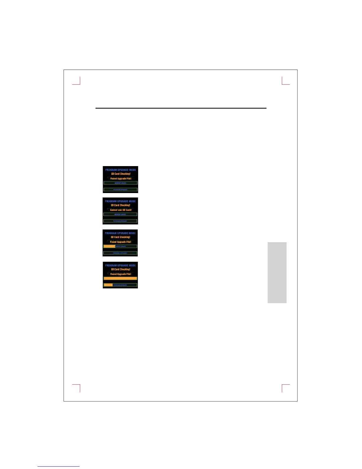 4. The upgrade starts automatically once the “upgrade file” on SD card is detected.